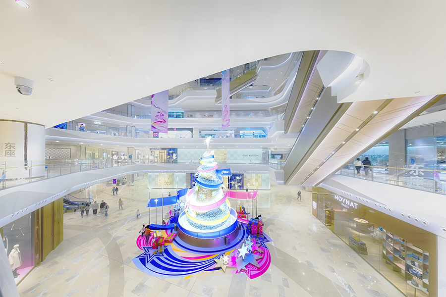 2024年,武漢恒隆廣場的圣誕樹裝置再次升級,由發(fā)光彩帶、雪花和星星環(huán)繞而成,整個裝置絢麗而夢幻,仿佛置身于童話世界之中。